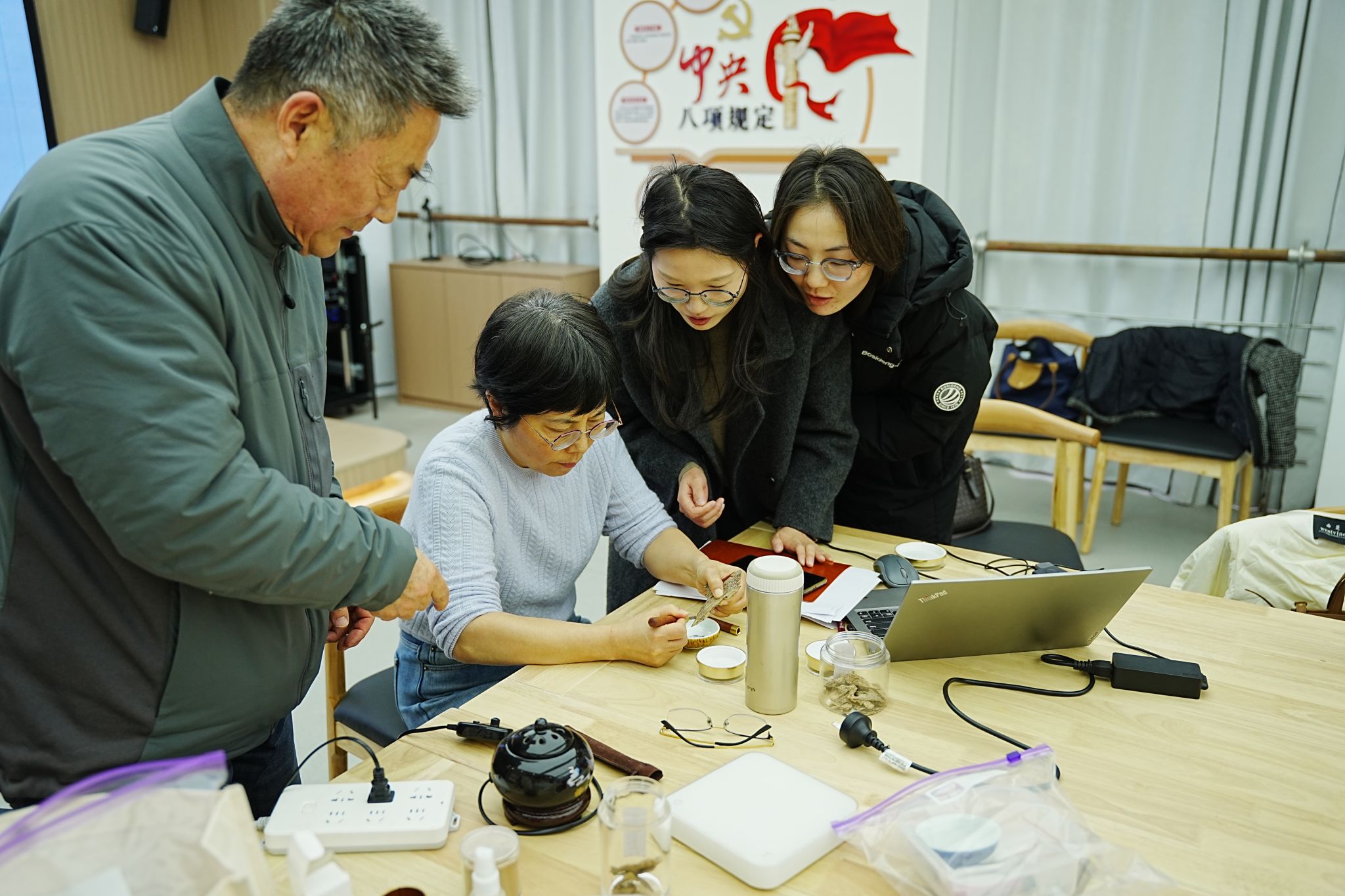 活动中,王家先首先讲解了中国传统香文化从古至今的发展脉络,介绍了香品的种类与品鉴知识,随后女老师们先后品鉴了不同单品香和古方合香的独特韵味,最后女老师们亲自动手,以沉香粉为基地,制作了寓意“马到成功”的丙午马年定制香盘,在手作中体验传统制香技艺的魅力。