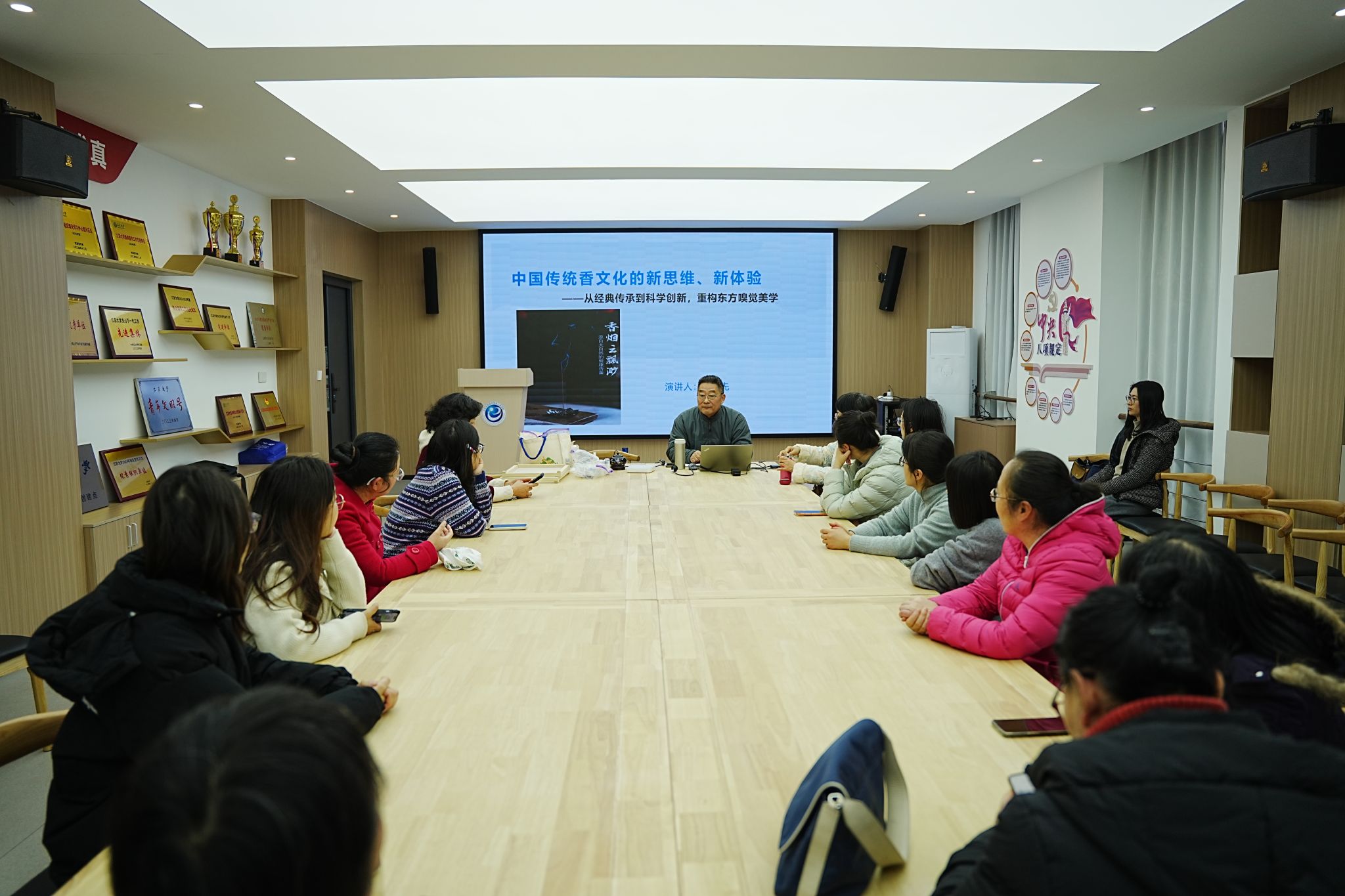 为庆祝“三八”国际妇女节,弘扬中华优秀传统文化,丰富女教职工精神文化生活,3月4日,电气学院工会在电气楼启明厅举办了主题为“中国传统香文化的新思维、新体验”的专题活动。活动特邀江苏大学校友、国家高级香道师王家先先生主讲,电气学院20余名女教职工参加。