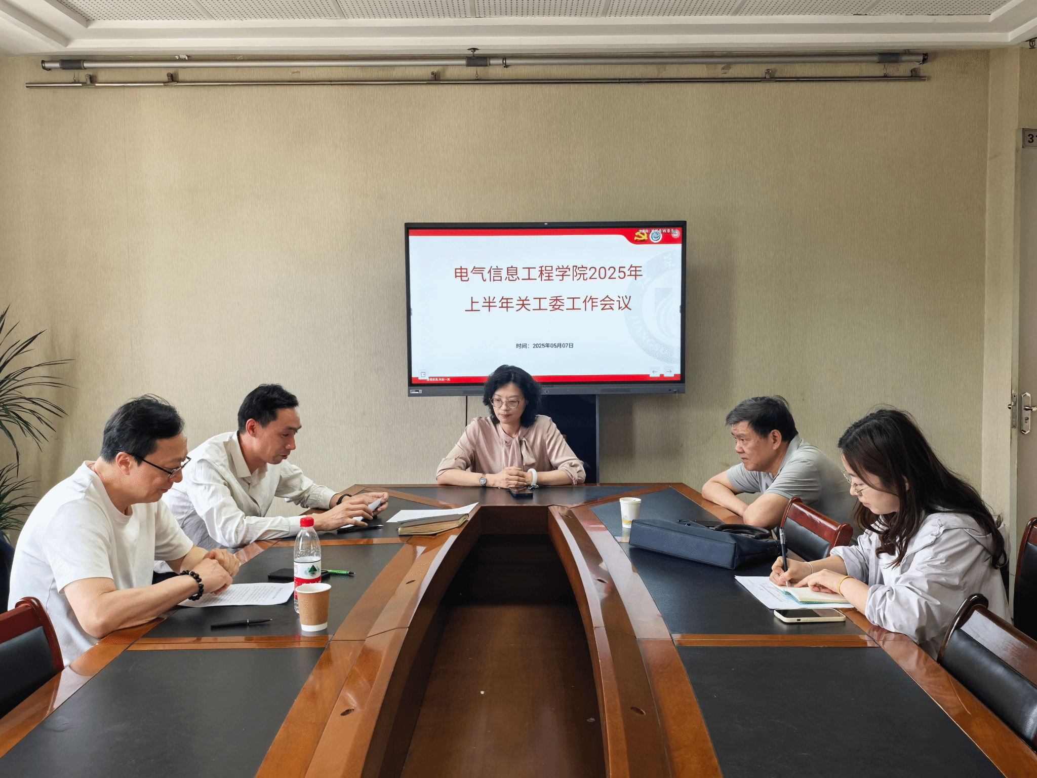 5月7日下午,电气学院在313会议室召开2025年上半年关工委工作推进会。院党委书记、关工委主任朱晏、关工委副主任李正明、邵学军、党务办主任肖怡晨及关工委秘书蒋雯倩出席会议,共同商议上半年关工委工作部署。院党委副书记、关工委副主任叶涛主持会议。