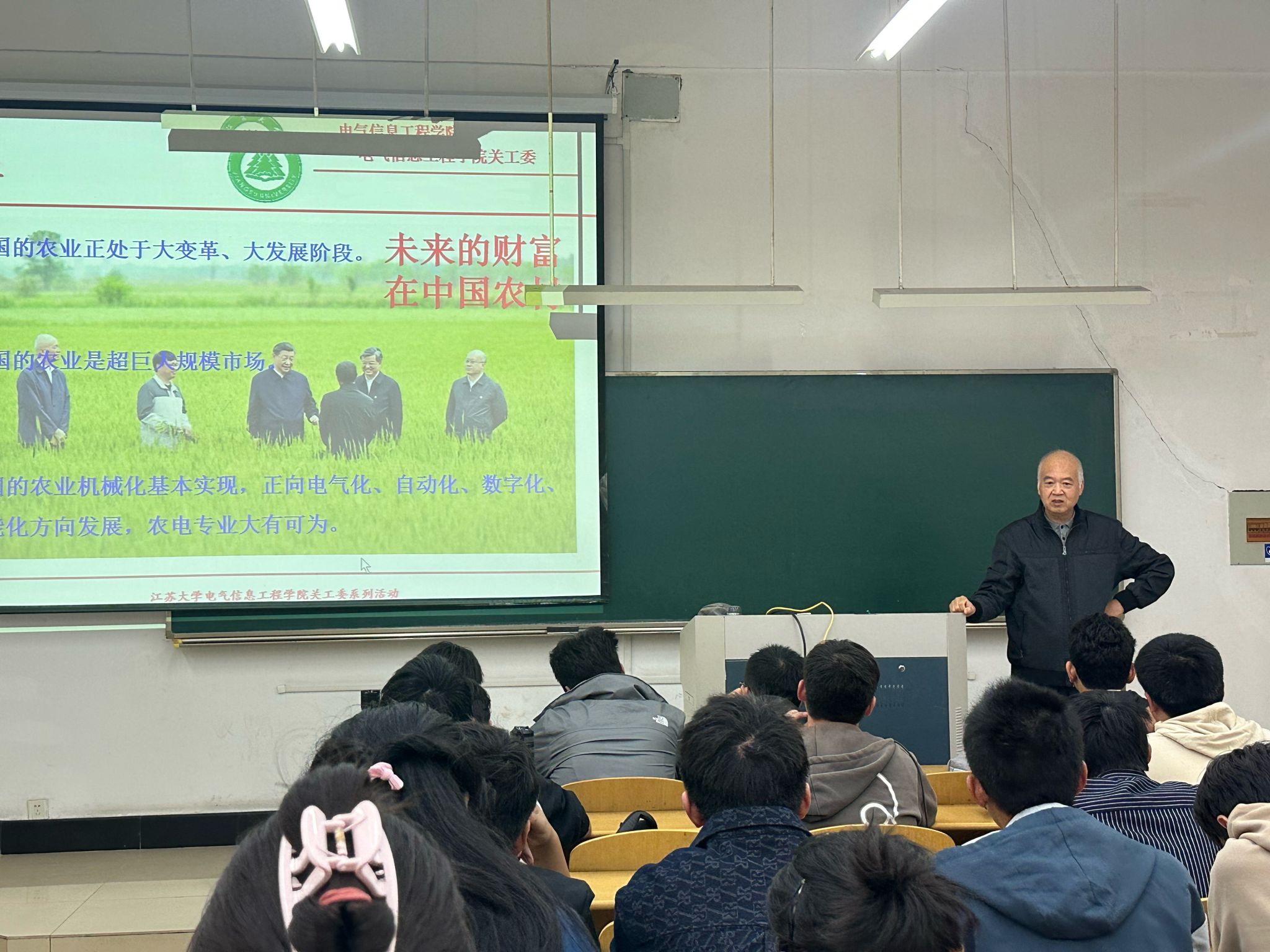 为帮助2024级农业电气化与自动化专业新生深入了解专业内涵、明晰发展方向、增强学习动力,电气学院关工委于2025年4月25日特邀学院关工委老同志赵不贿老师,为全体农电专业新生带来了一场内容丰富、见解深刻的专业认知讲座。