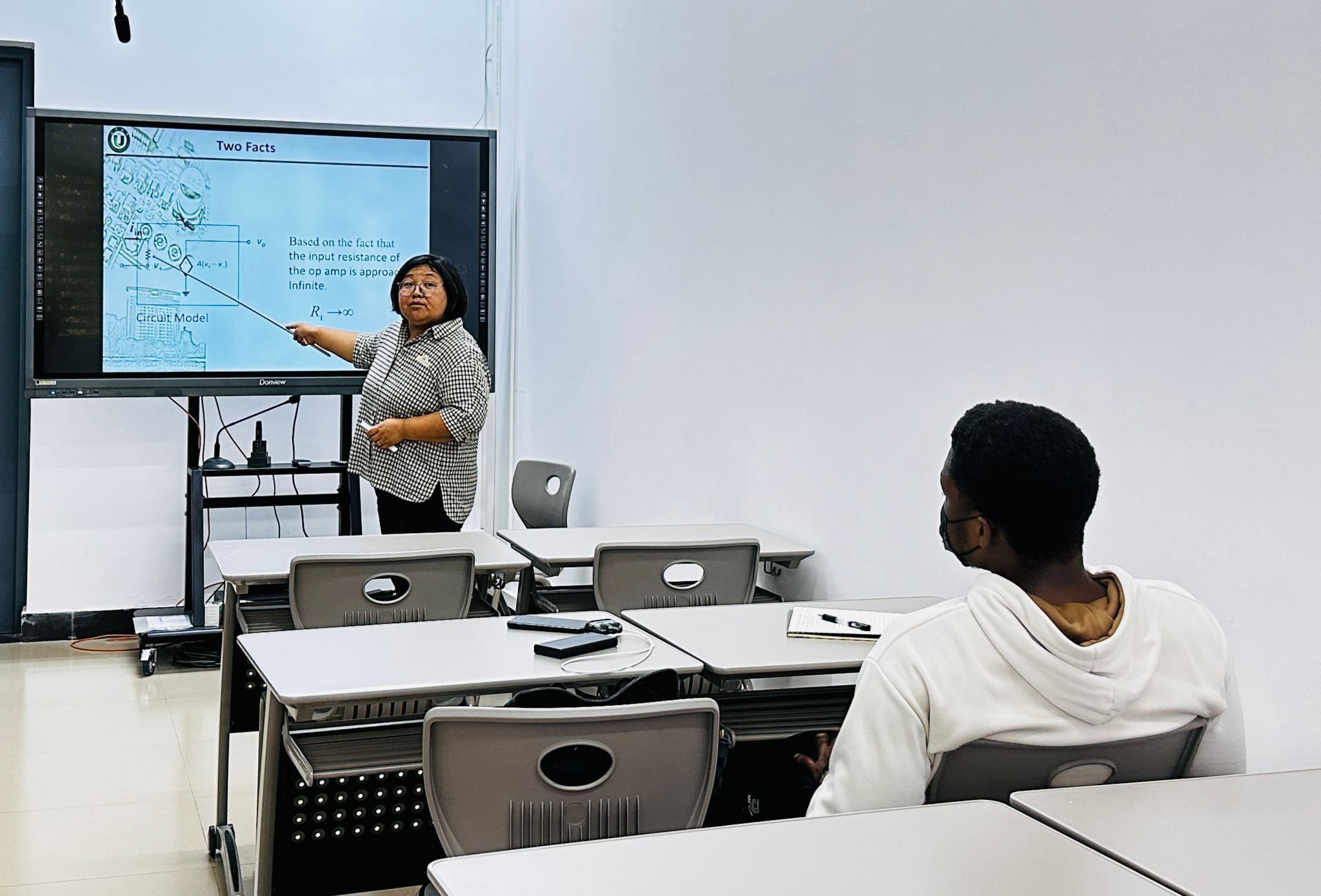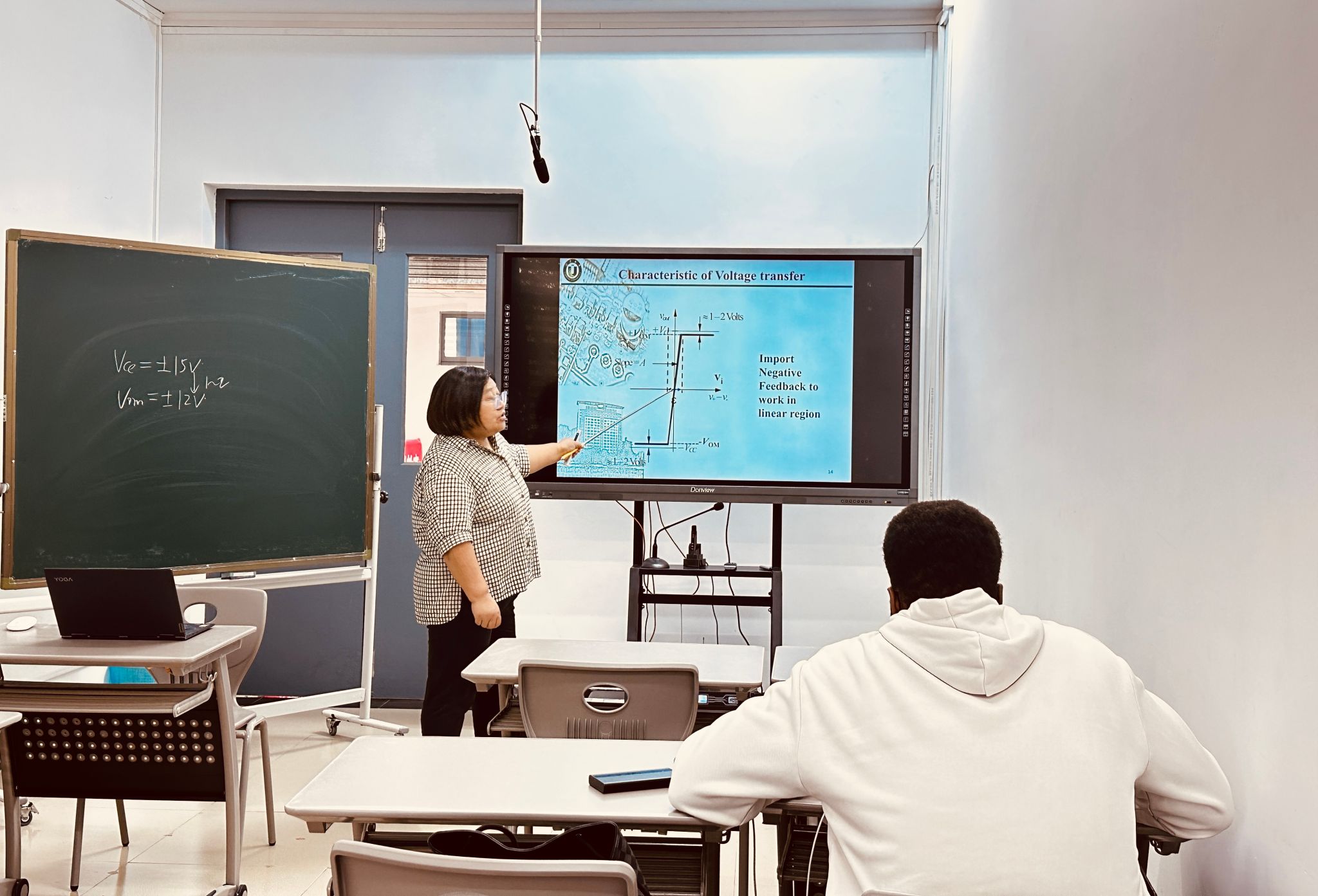 为进一步夯实留学生授课教师全英文教学能力,深化现代信息技术与留学生课堂教学的融合应用,2025 年 10 月 17 日上午 10 时,电气信息工程学院于京江楼 1313 教室,以随堂观摩形式成功举办了《电工电子学》全英文公开课。
