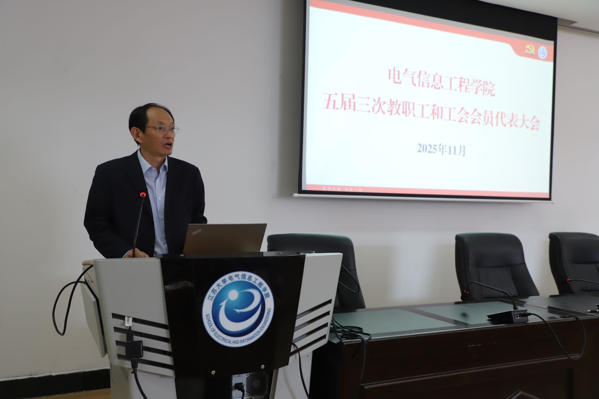 分组讨论结束后,大会在电气楼415顺利闭幕。闭幕式上代表们审议通过了大会各项报告,朱晏以“守正创新”为主题作总结发言,勉励各位代表在“十五五”的新征程上,恪守立德树人初心,筑牢思想政治根基,勇于突破,敢于挑战,以改革创新精神破解发展难题,奋力谱写学院高质量发展新篇章。