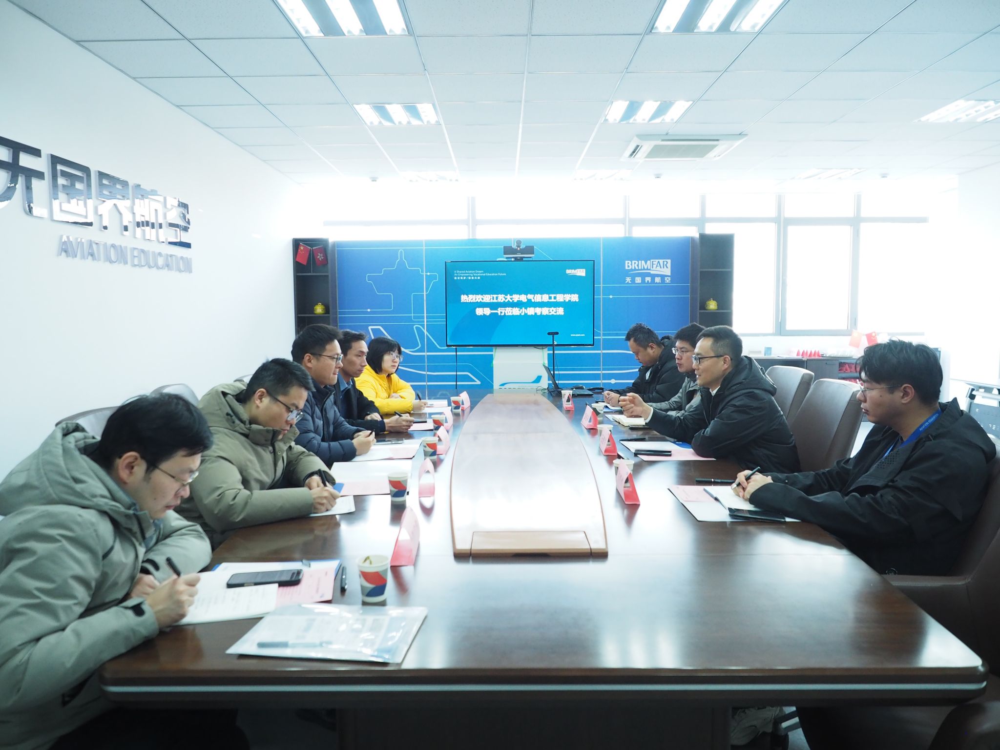 为精准对接低空经济发展需求,深化校企产学研合作,1月8日上午,江苏大学电气学院院长丁世宏带队赴江苏无国界航空发展有限公司调研。院党委副书记叶涛,副院长杜怿等参与,江苏无国界航空发展有限公司常务副总裁王建华及相关负责人热情接待。