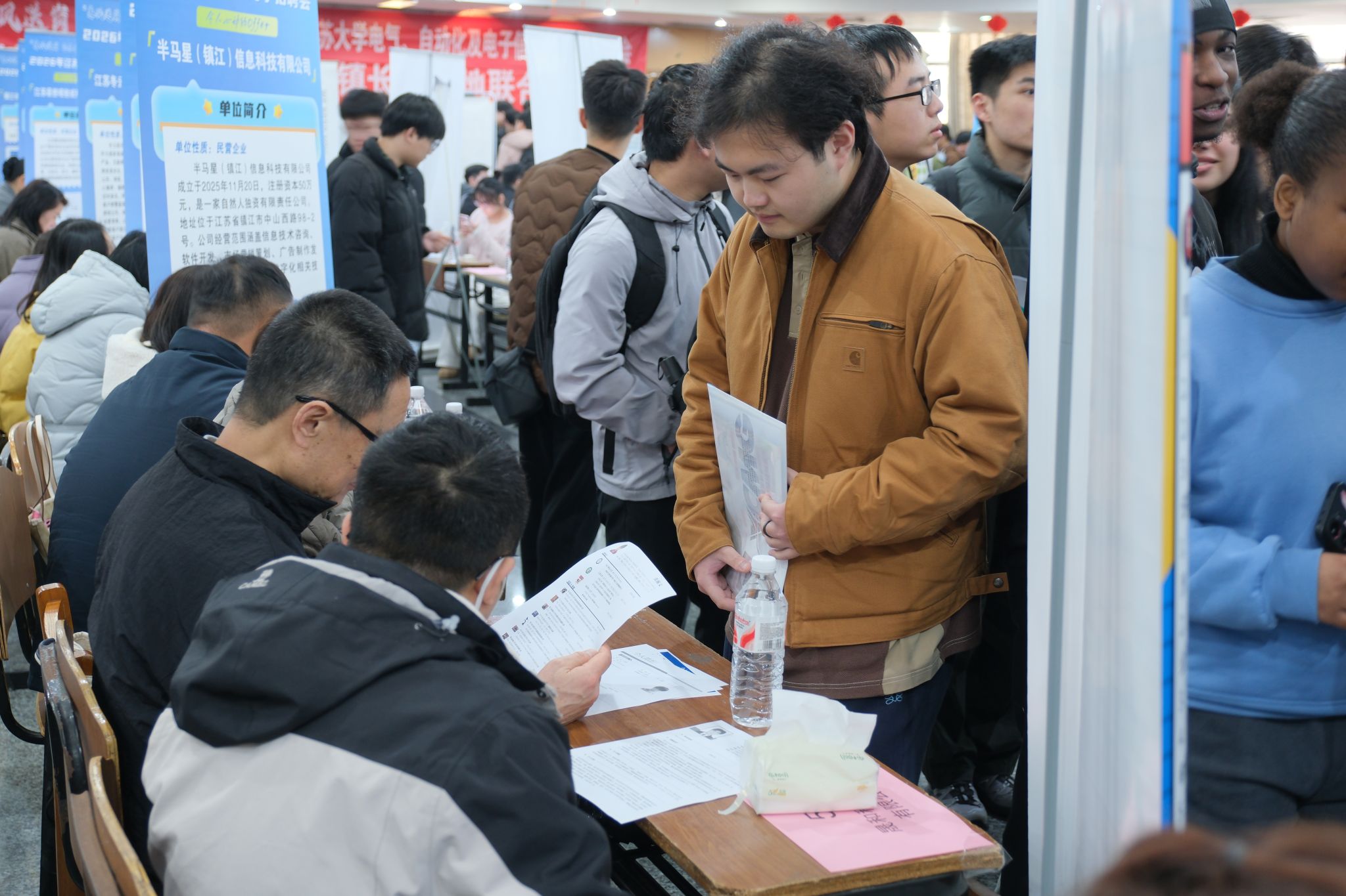 为切实提升招聘实效,让毕业生实现高效求职、精准就业,我院创新打造“宣讲+双选+面试+签约”全链条一站式就业服务模式,缩短就业周期。上海太易检测、无锡信捷电气、博世中国苏州分公司等多家重点企业在招聘会期间同时开展宣讲,详细介绍企业文化、发展愿景、岗位需求及人才培养体系,帮助毕业生快速锁定心仪单位。宣讲结束后,毕业生与企业代表双选洽谈,现场投递简历、接受初面,实现精准对接。