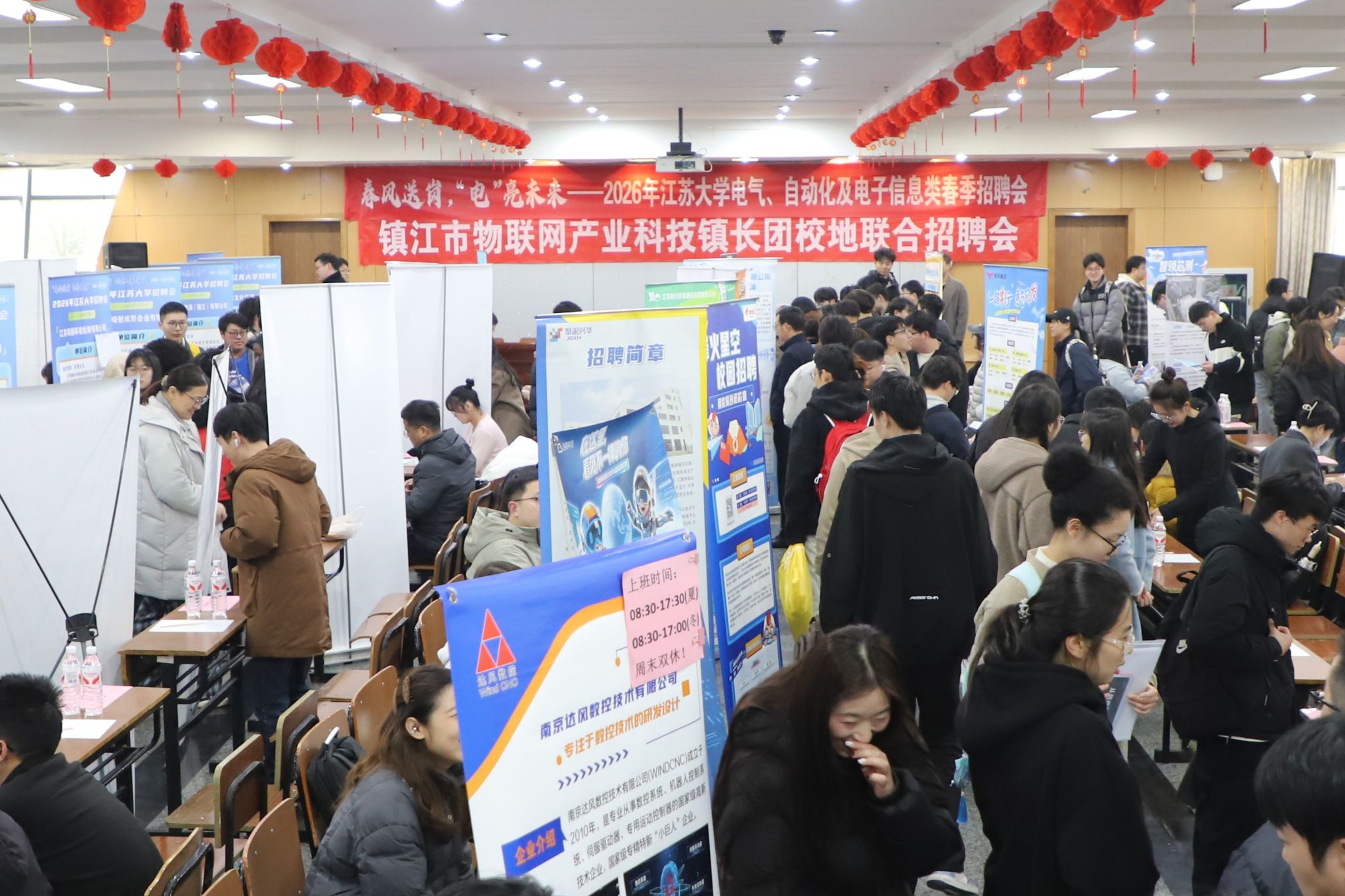为切实拓宽我院2026届毕业生就业渠道,搭建校地协同、校企对接的优质就业平台,3月19日下午,由电气学院牵头物电学院、计算机学院、农工学院、数科学院,联合镇江市物联网产业科技镇长团、京口区人力资源和社会保障局等单位共同主办的“春风送岗,‘电’亮未来”——2026年江苏大学电气、自动化及电子信息类春季招聘会,在京江楼报告厅顺利落幕。